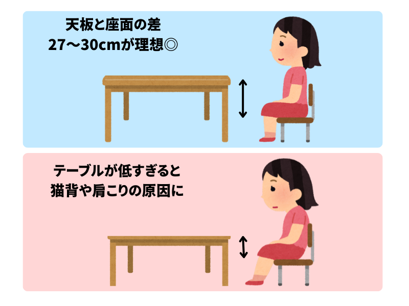 テーブルが低すぎると、自然と前かがみの姿勢になります。